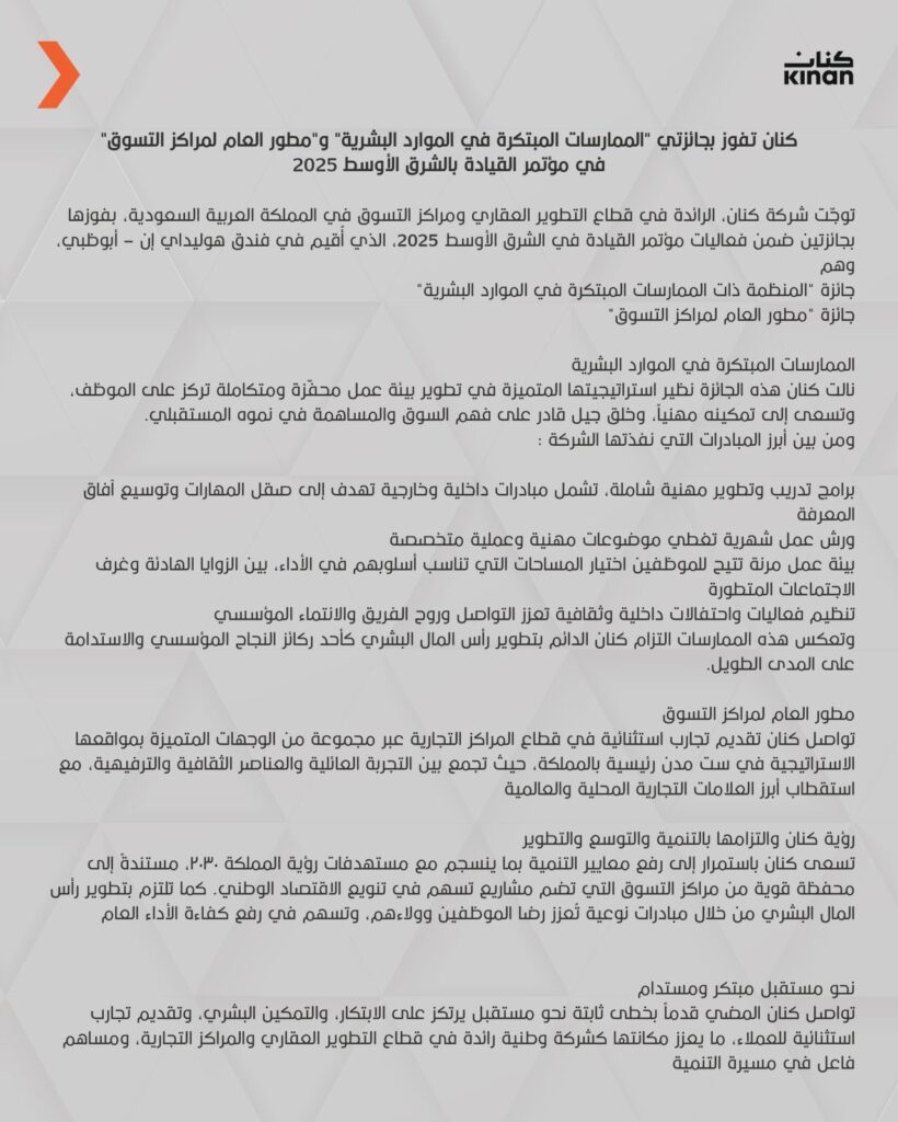 شركة كنان تحرز تألقًا وتفوقًا جديد..