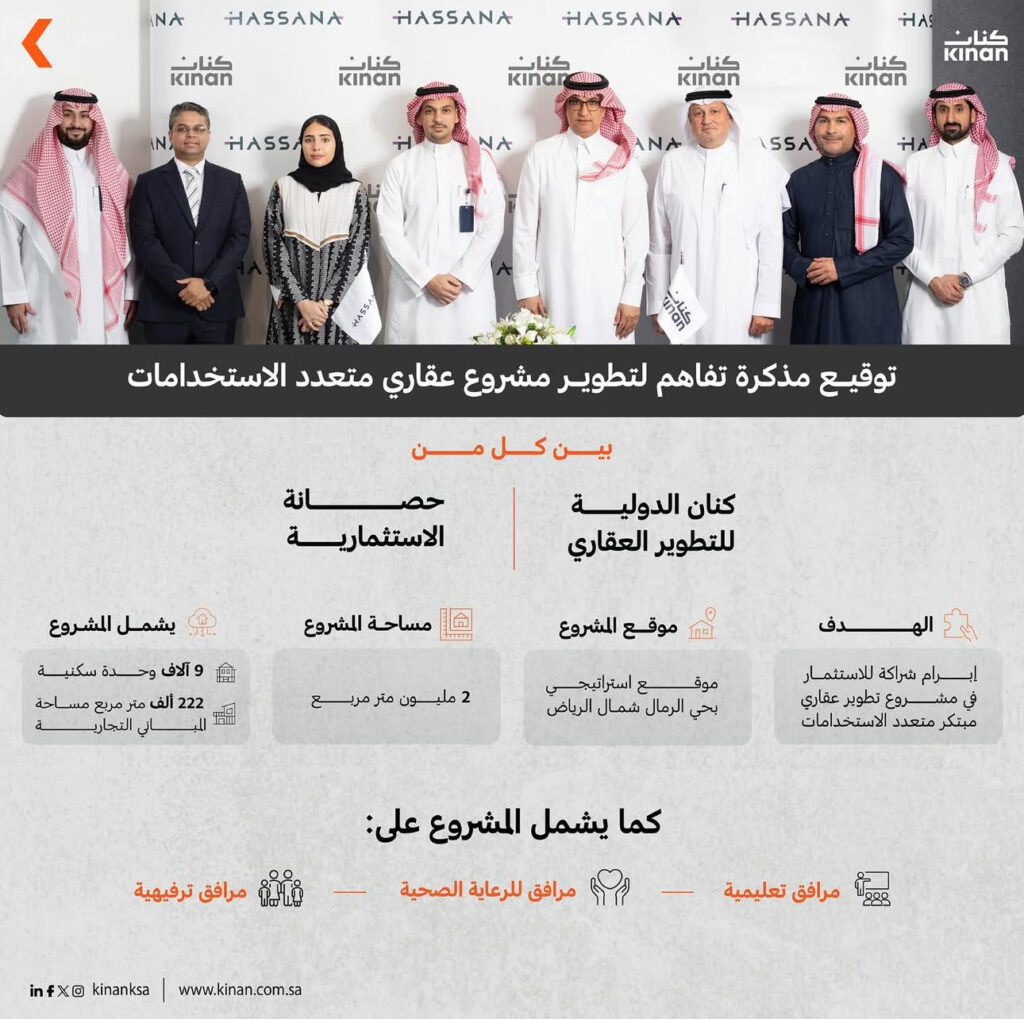 كنان توقع اتفاقية تأجير مع شركة عالم التنين الجديد في الرمال سنتر بقيمة 68 مليون ريال في مدينة الرياض.